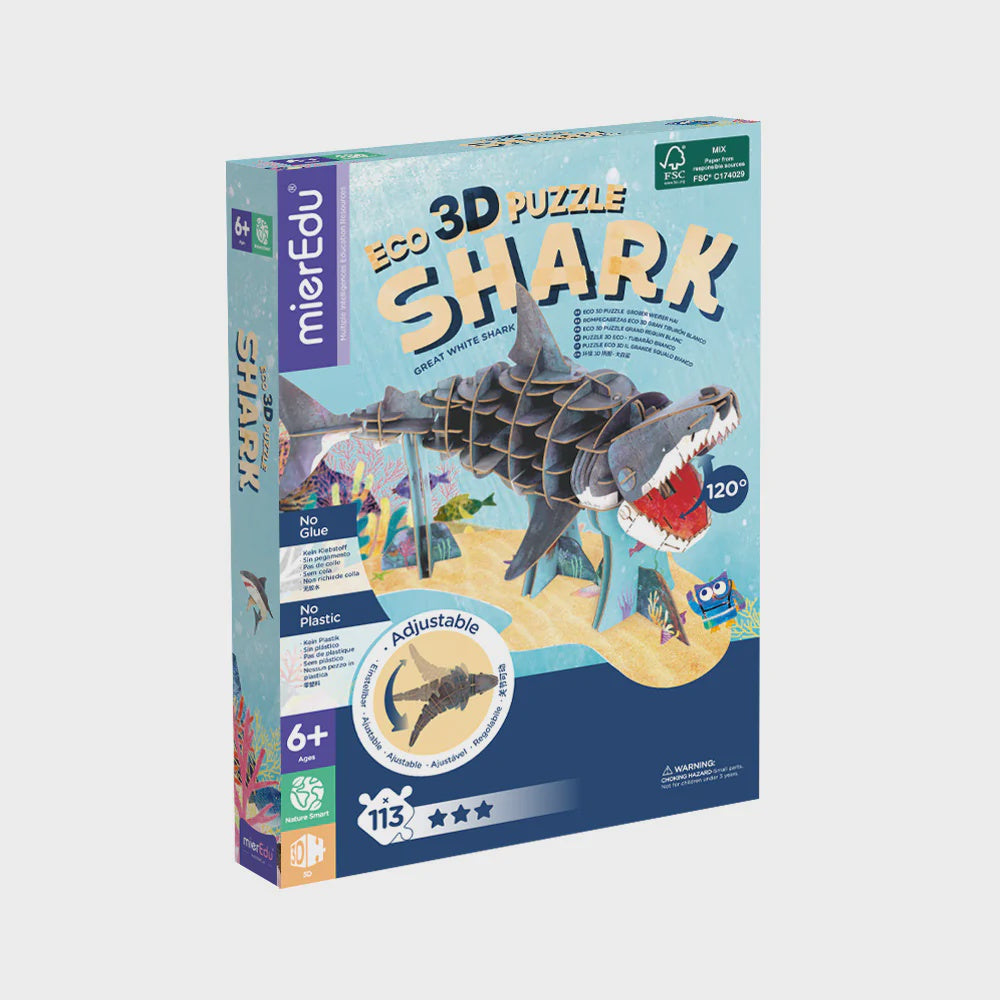 ECO 3D PUZZLE is a creative puzzle set with a spectacular display of a great white shark, promotes children to explore the body structure and related knowledge through assembling. It can exercise children's hands-on ability and patience, and bring them heaps of sense of accomplishment