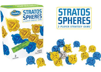 2-Player Strategy Game Take four-in-a-row to a whole new dimension with Stratos Spheres! Stratos Spheres loses the 2-D board and lets you build the game - and your logic skills - as you go. To start, add one of your coloured spheres to the white neutral sphere and pass it to your opponent. Your opponent then adds a sphere of his/her color. This 2-player game goes back and forth until one player gets four of his/her spheres in a row - in any dimension. With its 3-D construction, Stratos Spheres takes a classic play pattern and adds a dynamic new level of strategy and fun!